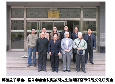 2、2008年4月3日至4日,韓國同德女子大學名譽教授、韓國孟子學會會長、韓國程朱學會會長趙駿河先生對濟南市傳統文化研究會進行了為期兩天的訪問。受湯傳忠會長委托,車士存秘書長、彭耀光副秘書長盛情接待了趙先生。