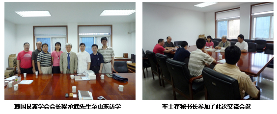 3、2008年6月9日,韓國艮齋學會會長梁承武先生一行二人至山東訪學,山東大學儒學研究中心、山東師范大學齊魯文化研究中心、山東省社會科學院儒學研究所、中國孔子基金會、濟南市傳統文化研究會相關人員就儒學在中國的現狀等問題與梁先生進行了深入的交流。