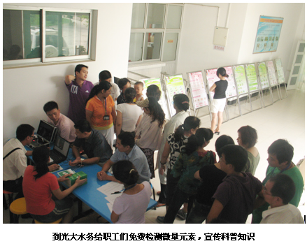 為擴大科普宣傳范圍,我們走進企業,為廣大的青壯年職工們進行免費的微量元素檢測。使正處于社會棟梁的人才在追求事業的同時能夠真正關心自己的健康。