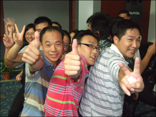 最為感動的是,我們的董事長湯傳忠先生也加入到互動環節,與大家一起體味著這個游戲的每一個瞬間,并不斷地給大家加油鼓勵,汗水順著他的發梢流下來,滴到臉上、身上,衣服全都濕透了,如同淋過雨一般,但他的臉上始終洋溢著自信、堅強、睿智和剛毅的笑容,他的一言一行給現場所有人以信心和鼓勵,大家在他的帶動和影響下,也信心倍增、激情滿懷,手握手、肩并肩,緊緊地靠在一起,互相鼓勵著,互相扶持著,不管多么勞累和疼痛,不管多么炎熱和難熬,不管面臨著多么嚴峻的考驗和困難,大家都緊緊地握住隊員的胳膊,絕不輕言放棄,決定為了團隊榮譽而奮戰到底!這一幕場景匯集成令人動容的感人畫面,凝聚成撼動人心的精神力量!