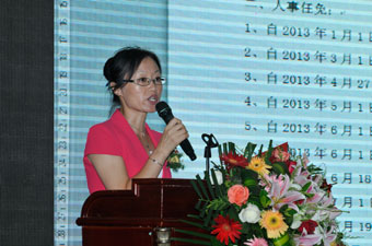 副總經理鄭朝霞女士作《2013年上半年工作報告》               人力資源于鳳仙經理宣讀《2013機構調整及人事任免決定》