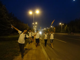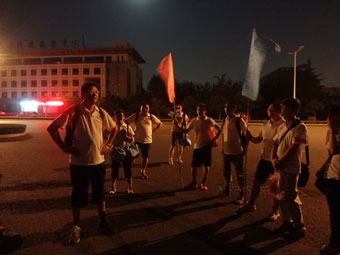 在第一集結點稍作休息后,各小組迅速向下一個目標行進。腳步雖然相比之前有絲勞累和沉重,但胸中的激情卻越來越旺盛。在第二集結點——邢村立交橋,后勤支持人員為大家準備了紅牛補充體力。簡單的休整之后,大家繼續前進。體力經過前期的消耗,大家的身體開始出現了疲憊,步伐也沉重起來,有的人腳上已經磨出了水泡,但卻沒有一個人喊苦喊累,沒有一個人停止繼續前行的腳步,因為大家知道:勝利就在前方;因為大家心中有一個信念:不能輕言放棄,不達目的誓不罷休。