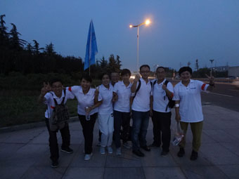 9月16日下午17:30,參加此次拉練的全體成員統一著裝,齊聚在生產基地會議室里參加了動員大會。培訓部經理傅龍先生帶領大家進行了定向,就拉練人員分組、行程規則、注意事項等進行了詳盡細致的介紹。全體人員按照動員要求分為三個小組,隨后,各小組人員用了約10分鐘的時間選隊長、起隊名、隊呼,畫隊旗。18:10,全體人員統一乘坐大巴車到達徒步的起點——山東財經大學。18:30分,三個小組同時邁出了這次征程的第一步,拉練活動正式開始。