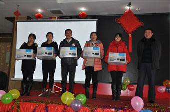 聯歡會結束后,舉行了豐盛的午宴,午宴上全體員工共同舉杯慶祝豐收的2013,喜迎充滿希望的2014。午宴過程中進行了抽獎及游戲頒獎,領導與員工的親情互動將午宴推向了高潮,整個年會在溫馨、歡樂的氣氛中度過。