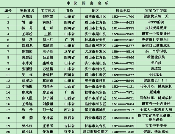 工作人員會在五個工作日內與名單上的顧客聯系,請中獎顧客朋友們保持手機暢通,再次恭喜以上獲獎人員!