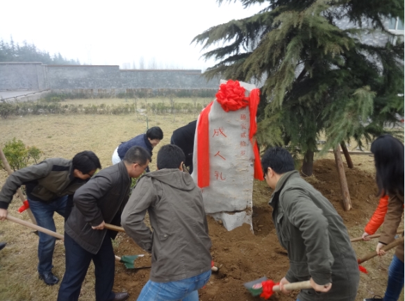 在接下來的植樹和二十周年成人禮樹碑活動中,大家的心情都萬分激動,熱情高漲,拿起鐵鍬迅速動起手來,動作熟練、有條不紊,干的熱火朝天。經過大家的共同的努力,中午時分,終于順利完成了常青樹種植和樹碑活動。公司董事長湯傳忠先生發表了簡短的致辭,以樹喻人,對公司今后的發展充滿了信心,對管理人員寄予了更高期望。