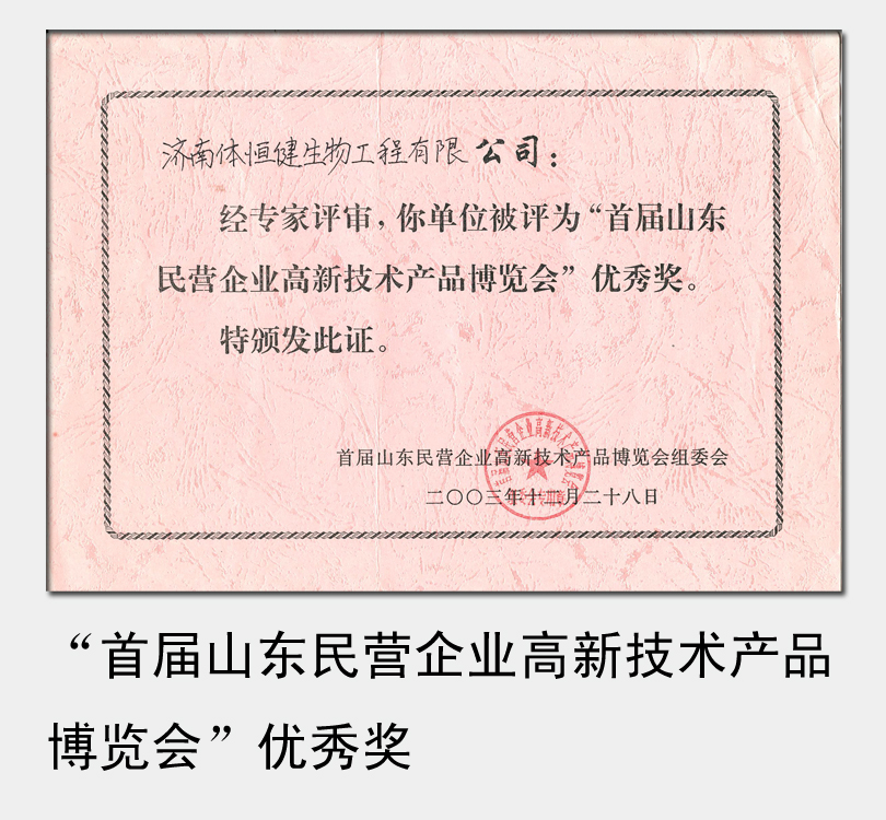 2003年被評為“首屆山東民營企業(yè)高新技術(shù)產(chǎn)品博覽會”優(yōu)秀獎