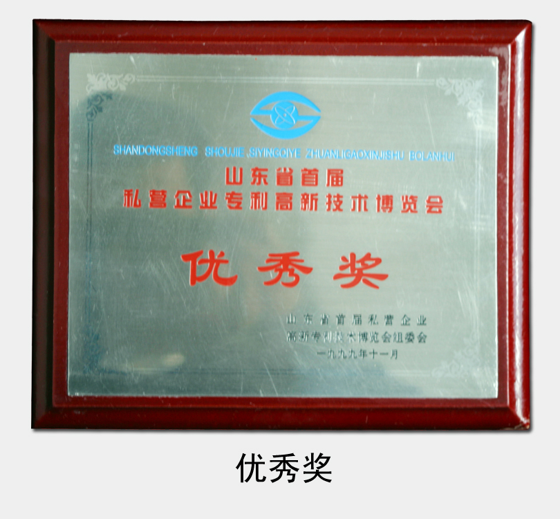 1999年被評為“山東省首屆私營企業專利高新技術博覽會優秀獎”
