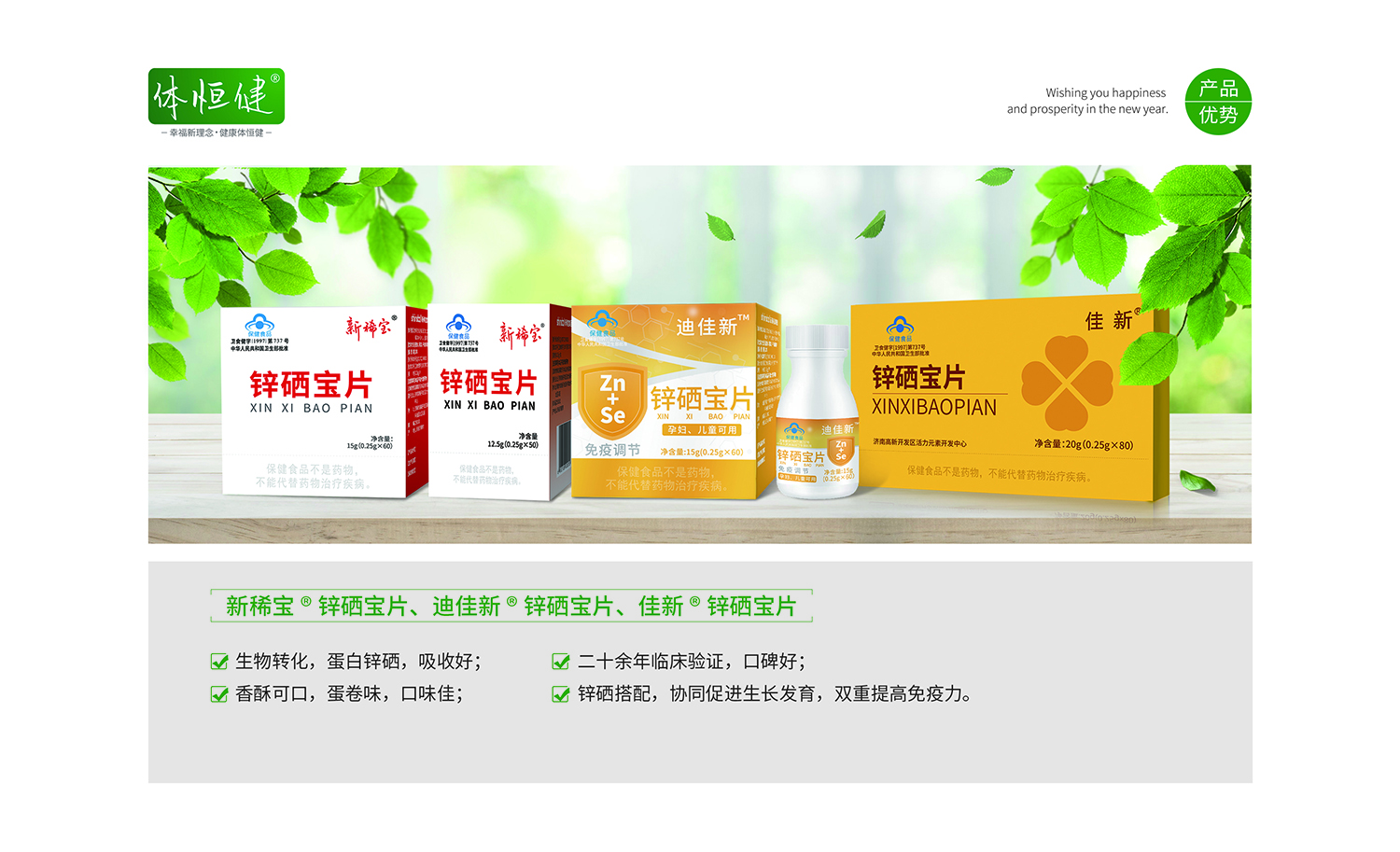 新稀寶集團創立于1995年,是中國較早一批進行微量元素開發的企業,也是山東省首批通過GMP認證的保健食品企業。產品方面,新稀寶已經涵蓋微量元素、礦物質、維生素、益生菌與DHA等系列產品。其中,公司主打的產品新稀寶牌鋅硒寶片是公司創建之初的產品,也是企業自我研發的產品,已有28年的臨床經驗,其產品效果被醫學界所認可。